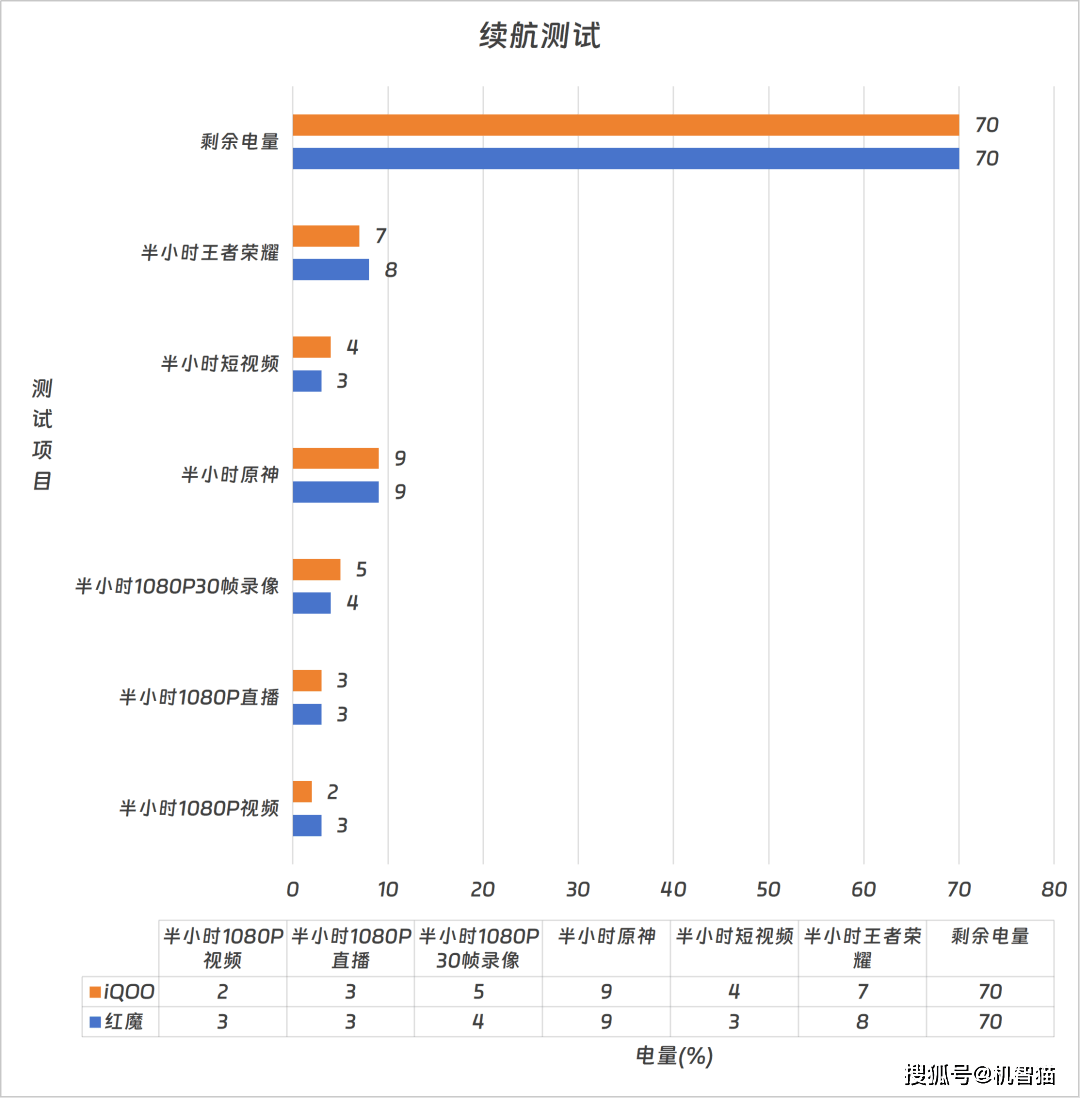 在续航上,iQOO是7400mAh电池,红魔是7500mAh电池,都能满足一天的日常使用,两者在同一场景下的耗电表现也基本一致。